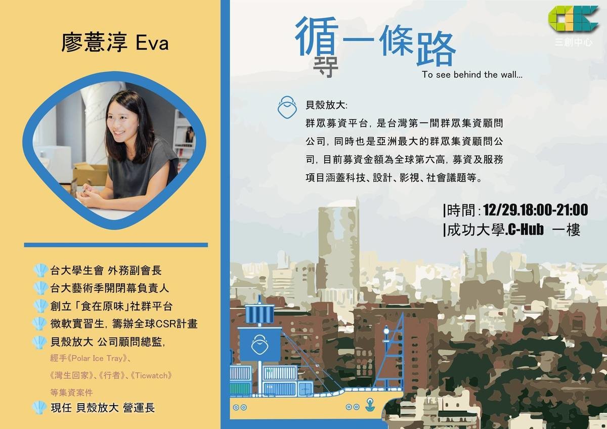 Eva廖薏淳,貝殼放大的共同創辦人之一,總是喜歡嘗試與挑戰的她,於26歲這年成為了貝殼放大的營運長。如果說現在的你仍對未來有所迷惘,那麼或許你應該和我們一起,循著Eva的腳步,回顧從學校到創業的新路歷程,找尋自己的道路。